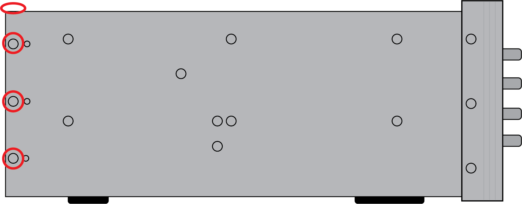 To check these fuses, remove the outer case, and then remove the highlighted screws (there are 3 screws in each side, 3 underneath, and then 2 in the top0 to release the back panel assembly)